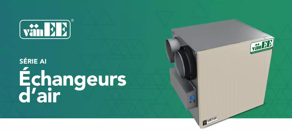 Les maisons sont désormais mieux isolées et plus étanches que jamais… emprisonnant la moisissure, l’air vicié et la poussière à l’intérieur de la maison. Depuis plus de 40 ans, vänEE est le chef de file de l’industrie de la qualité de l’air intérieur. Grâce à nos échangeurs d’air, l’air vicié et pollué est retiré de la maison. Obtenez le maximum d’air frais et d’efficacité énergétique grâce à notre série AI incluant notre technologie exclusive VIRTUOMC. VIRTUO n’a qu’une seule chose en tête : le confort du propriétaire!