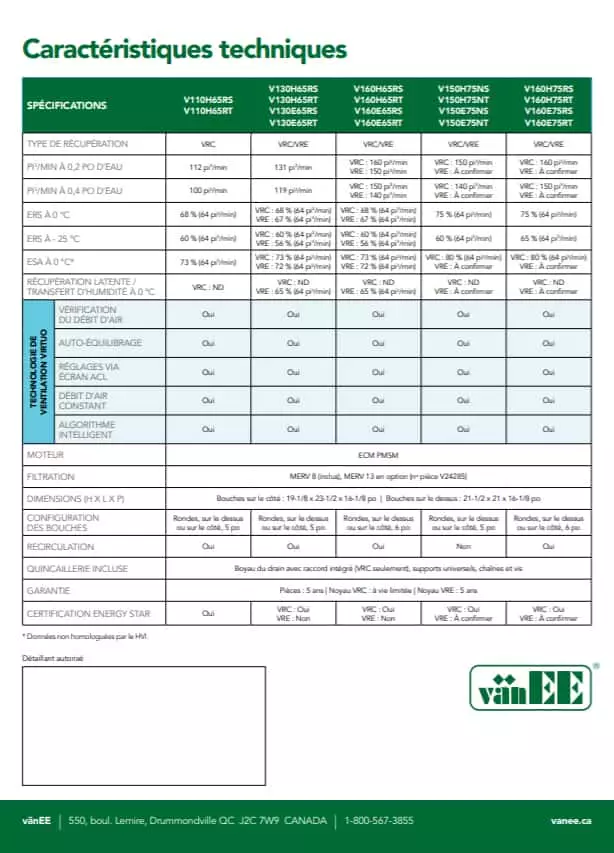 Échangeur d’air VanEE Virtuo 75ERS VRC 160 CFM
